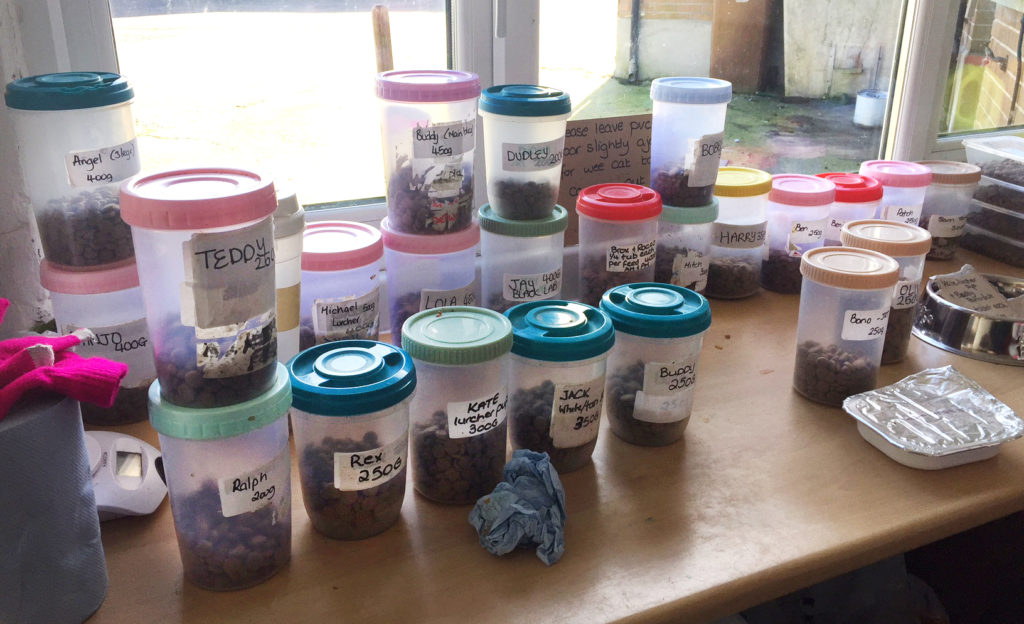 Feeding time – each dog has their food measured out by volunteers on a feeding schedule.